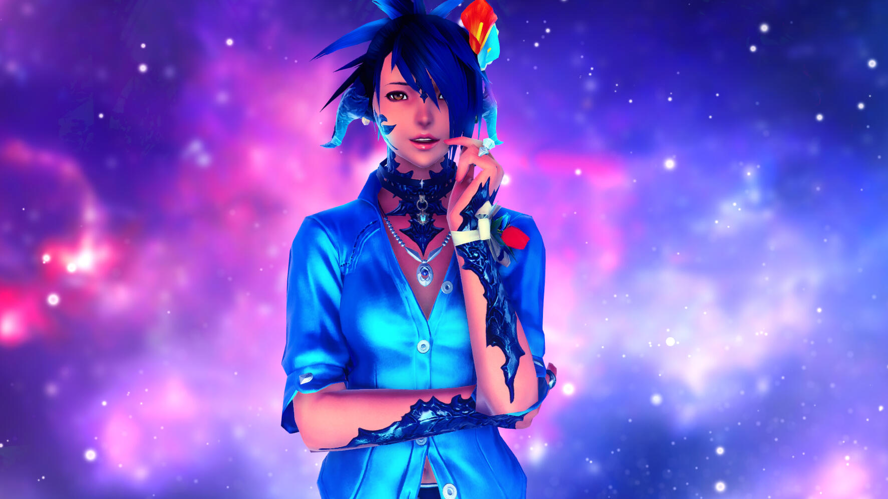 Personality: She is usually one to be more laid back and observe others, a great listener to those that need one. Most see her as sort of "edgy" and may find her hard to approach but she is very welcoming and kind. Sometimes she does get a little wild, letting her natural instincts get the best of her in some situations. She has a tendency to be quite a flirt with the women of Eorzea, a true hopeless romantic. She's married to a loving Au'ra named Mihiri Alabaster but extra activites are always allowed for both partners. A caring person by nature, she will lend a hand to those she finds in need.